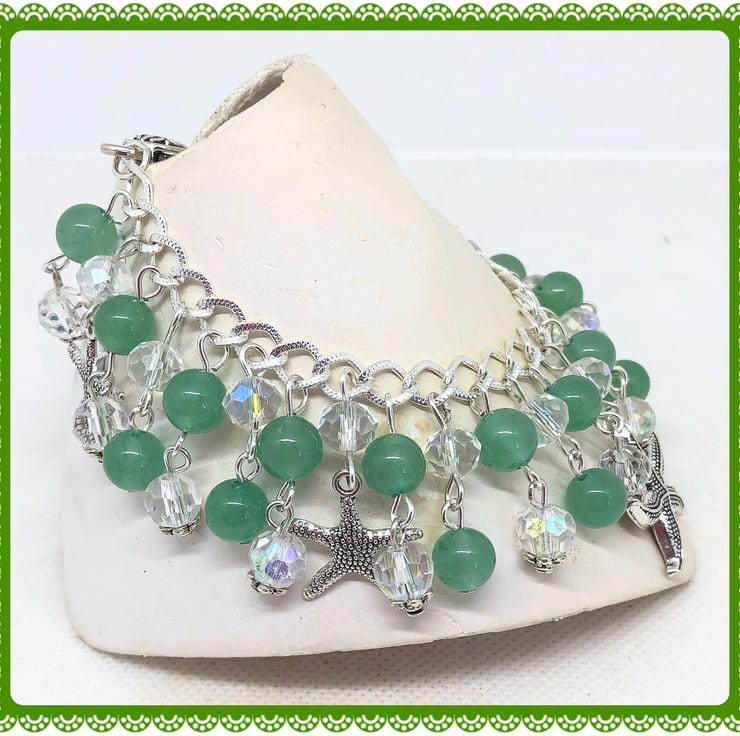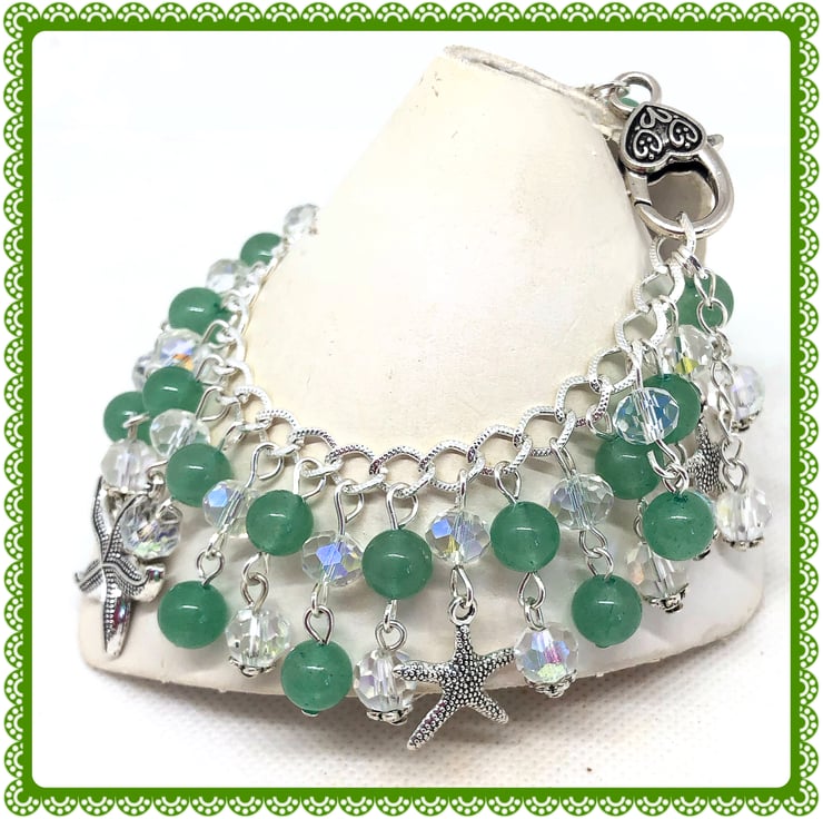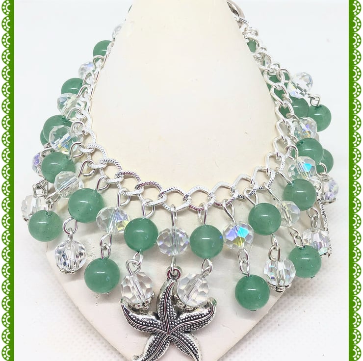 One of a Kind Starfish & Aventurine gemstone charm bracelet.