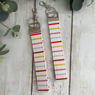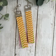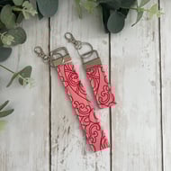 These key fobs are made from 100% cotton fabric, using 4 layers of material and lined with a sturdy interfacing which keeps the straps nice and durable and comfortable if you wear them on your wrist.