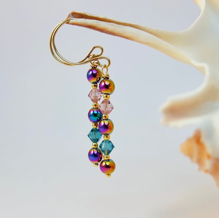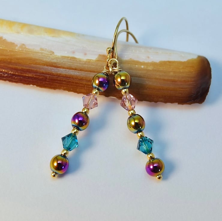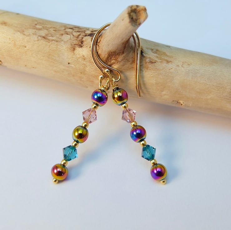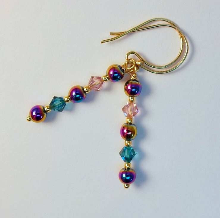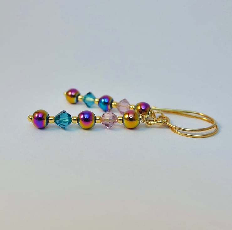 Rainbow Hematite & Crystal Earrings, Birthday, Anniversary, Gifts For Her