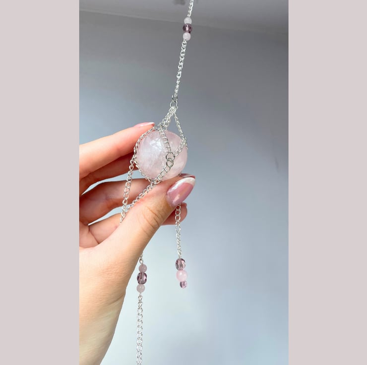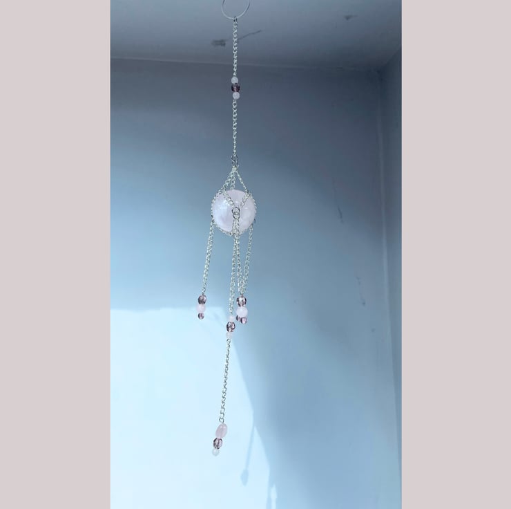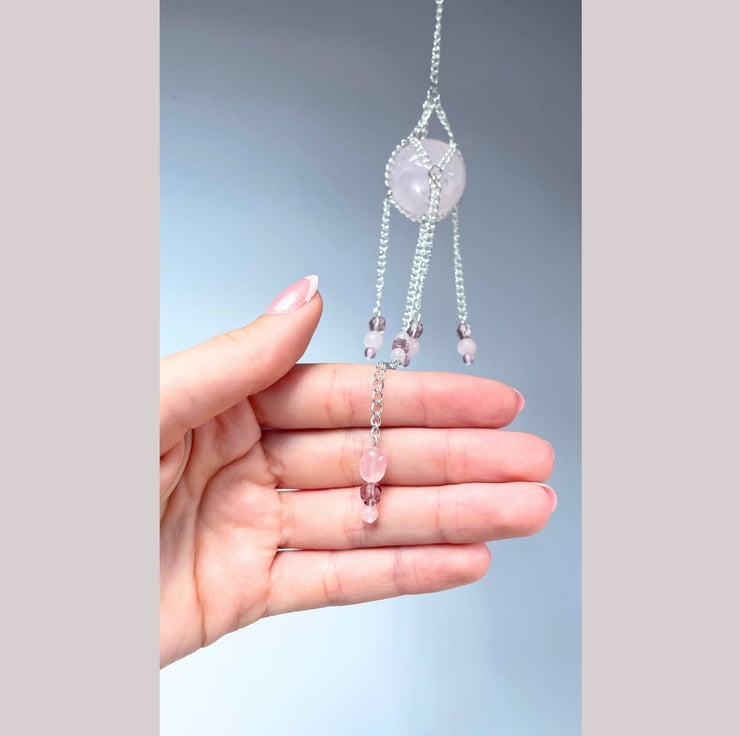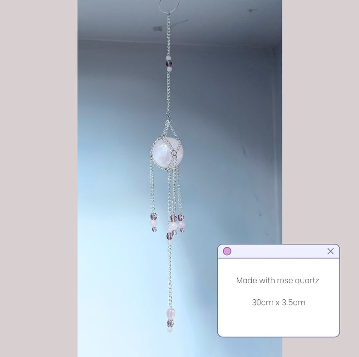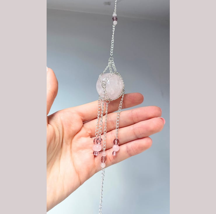 Handmade rose quartz suncatcher/crystal wall hanging