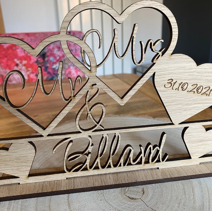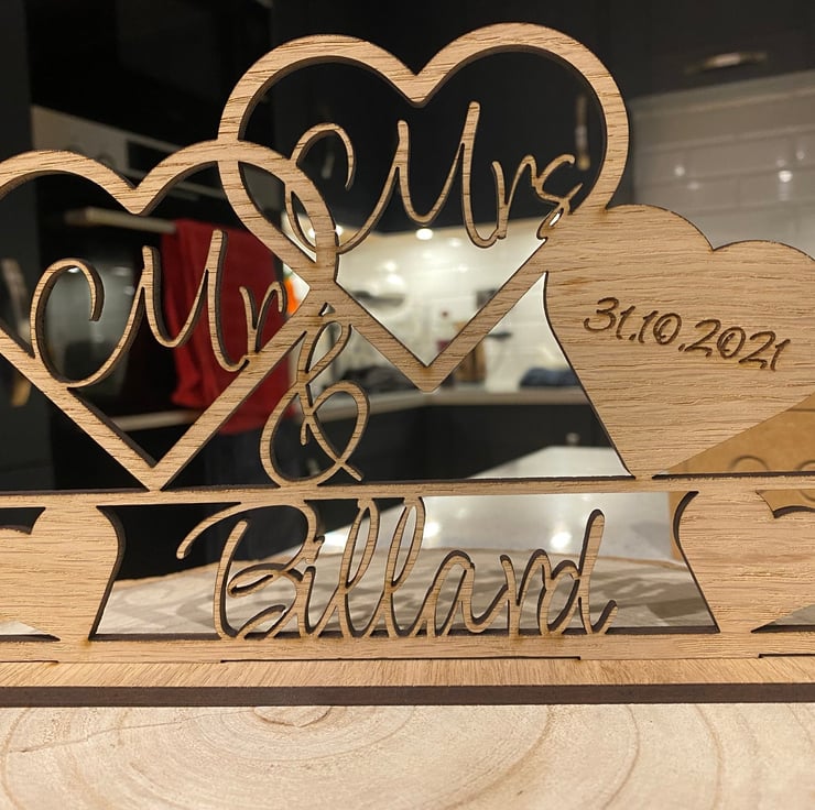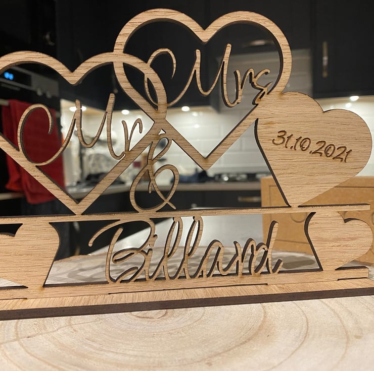 Laser Cut Oak Veneer wedding sign.