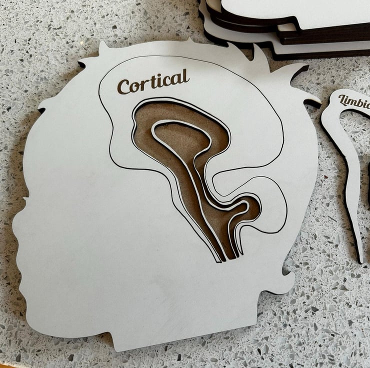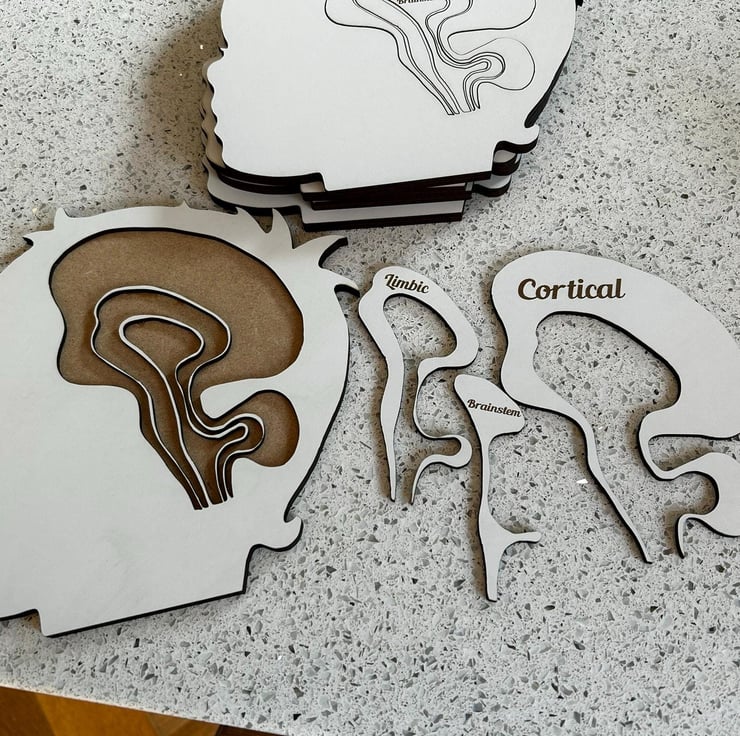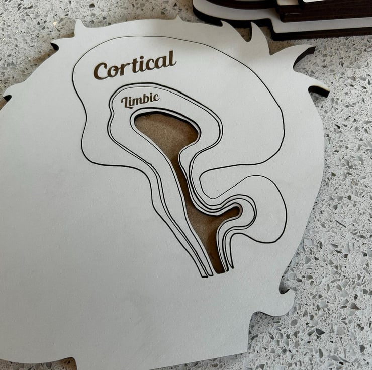 Help explain the mysteries of the mind with this beautifully handcrafted wooden jigsaw puzzle, designed to showcase the Cortical, Limbic, and Brainstem regions of the brain. Commissioned by a family therapist, this unique puzzle is perfect for therapists, educators, students, or anyone fascinated by neuroscience.