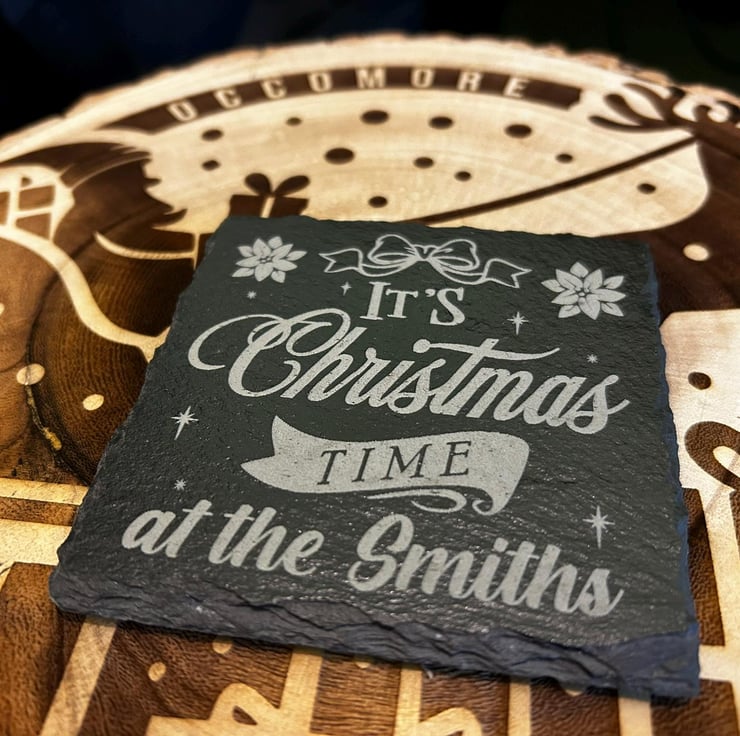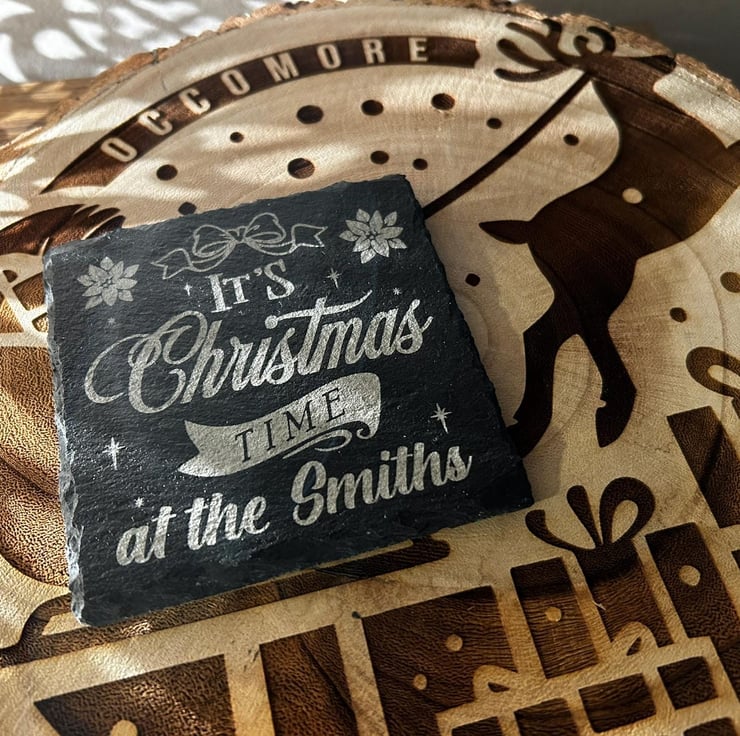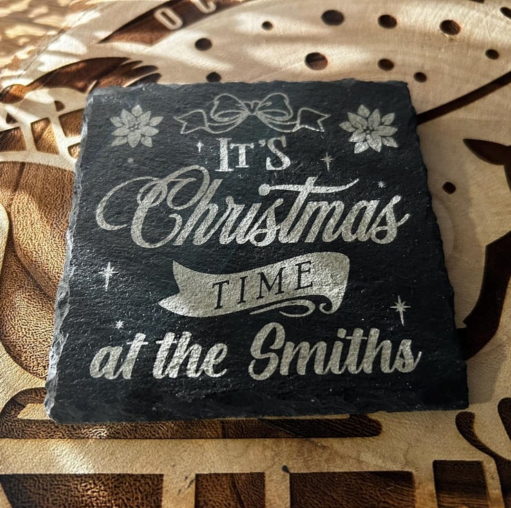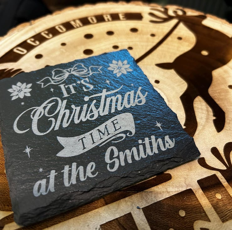 It's Christmas Time at - Name's Slate Coaster - Circle or Square - Matt Finish Personalised Slate Coaster.
