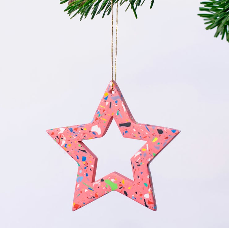 Star Terrazzo Christmas Ornament, Pink Rainbow Eco Sustainable Xmas Gift Scandi