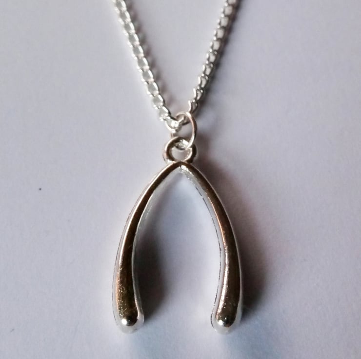 This wonderful necklace features an simple wishbone charm hanging on 18" silver plate chain.