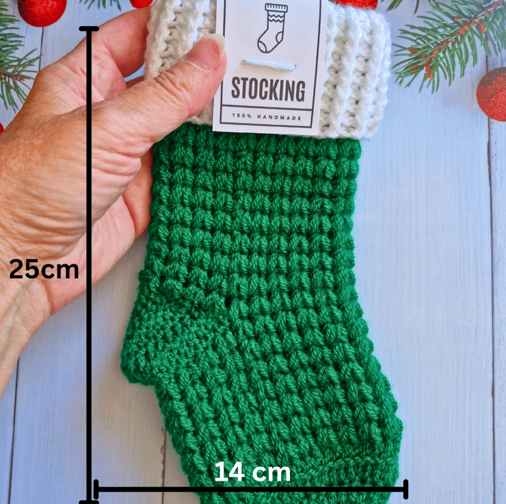 Bring a cosy, handmade touch to your Christmas décor with this crochet stocking in bright green and white. Perfect for hanging on the tree, dressing the mantel, or adding to festive place settings, this stocking is a lovely way to celebrate the season.