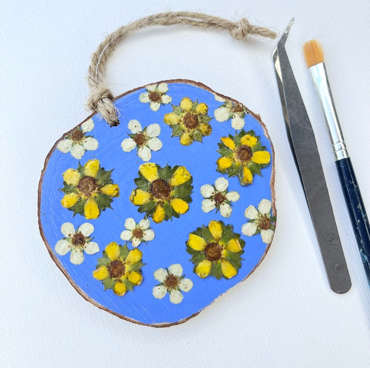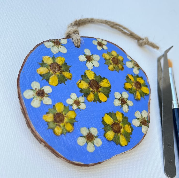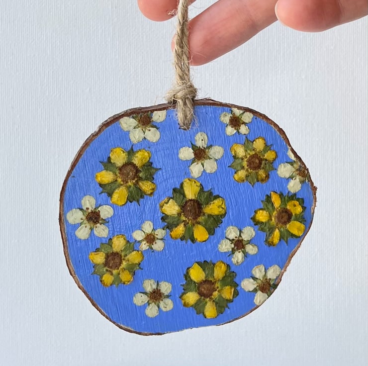 Real Pressed Flower, Wildflowers, Wood Slice Hanging Decoration