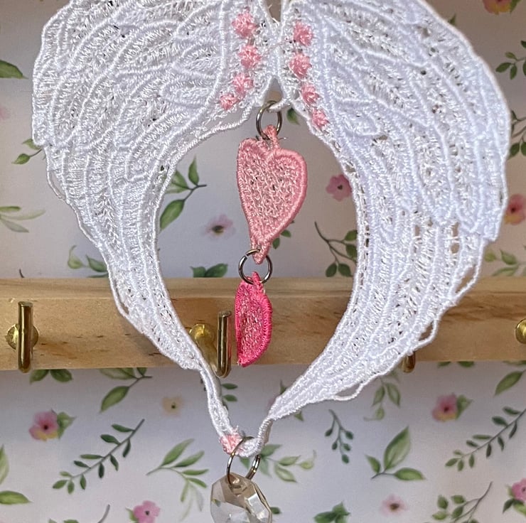 Freestanding Lace Angel Wings – Grief-Inspired Rainbow Sun Catcher Keyring