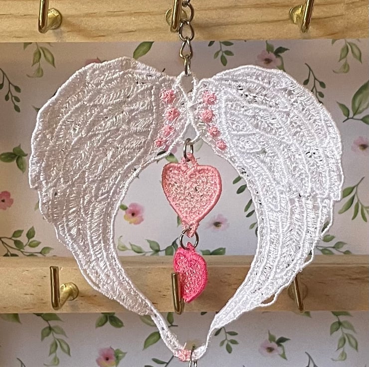 These beautiful, machine-embroidered angel wings are crafted with care and meaning. Each piece is freestanding lace, delicately stitched to symbolise comfort, remembrance, and connection to loved ones lost but never forgotten.
