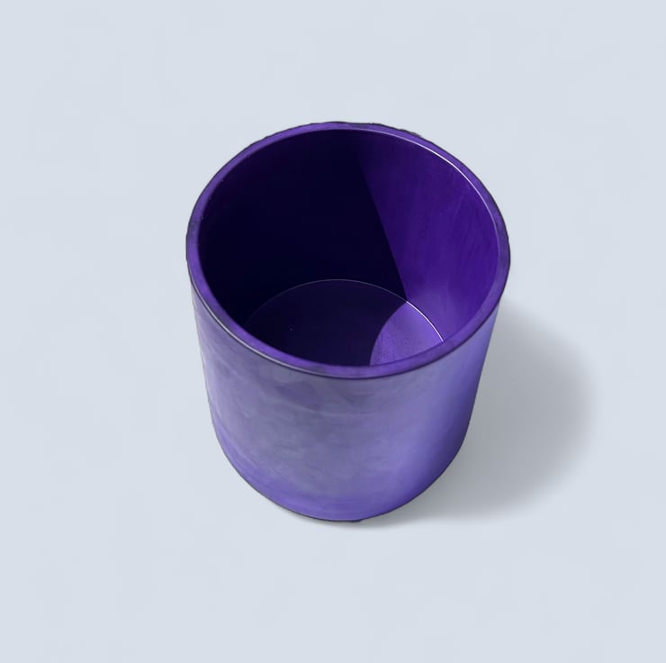 This extra-large handmade cylindrical plant pot features a dark purple indigo colour, it is thoughtfully crafted from Cassini, a material commonly used for restoring and repairing marble and stone, giving the pot a smooth and tactile finish reminiscent of marble. Additionally, it is water and weather-resistant, making it suitable for both indoor and outdoor use.