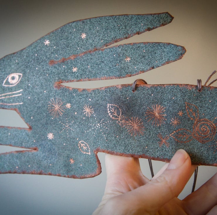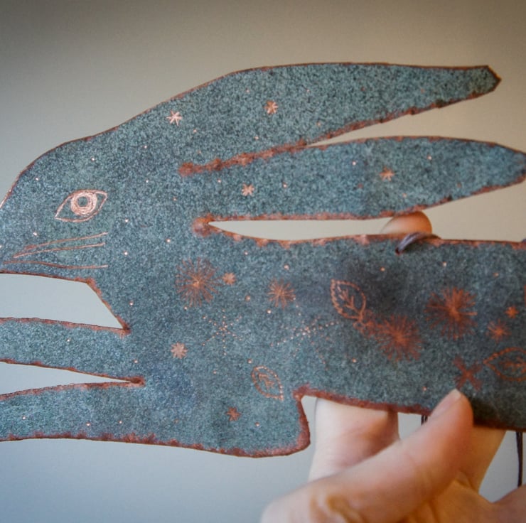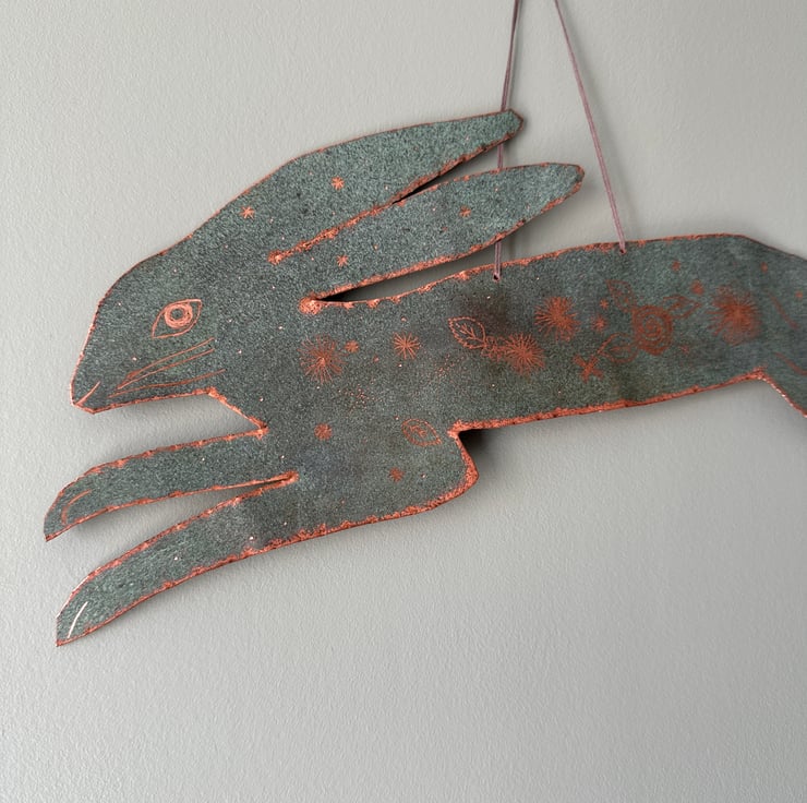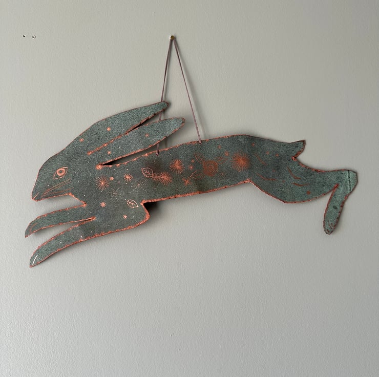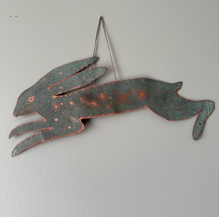 This copper wall hanging is inspired by the hare and the folklore of the hare.