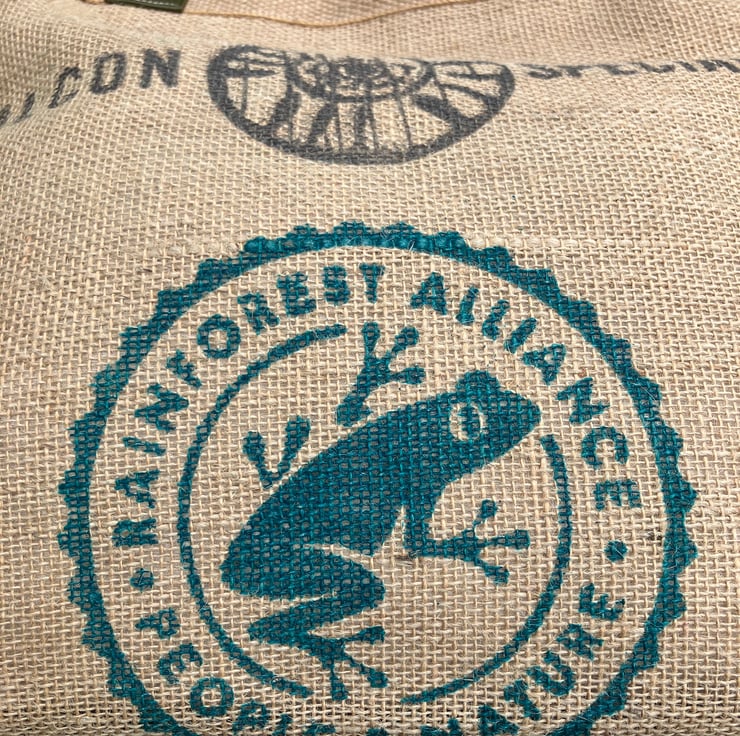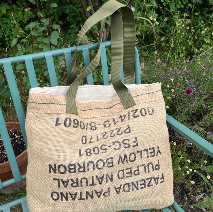 I have a local coffee roaster where I buy my coffee in Hull and they have lots of coffee sacks . I used to make lots of bags from found stuff so I thought YES !