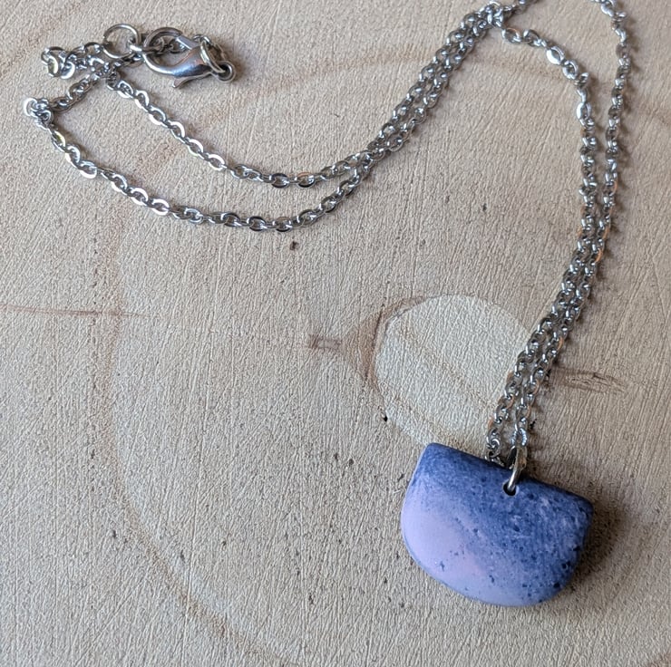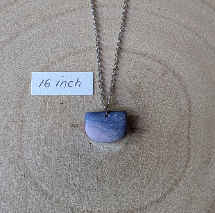 Hand crafted, unique necklace with stainless steel chain and lobster clasp. Chain size is 16 inch.