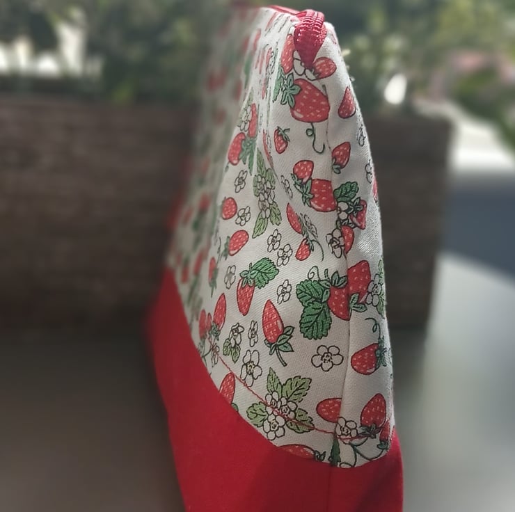 All bags are approximately 20cm wide and 15cm deep. Each bag has been made using co-ordinating fabrics for the interior and a zip to close.