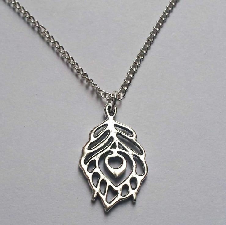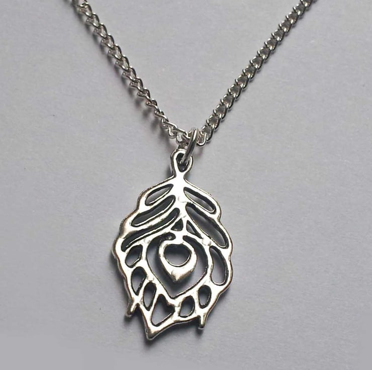This nice necklace has a feather design on silver plate 18" chain.