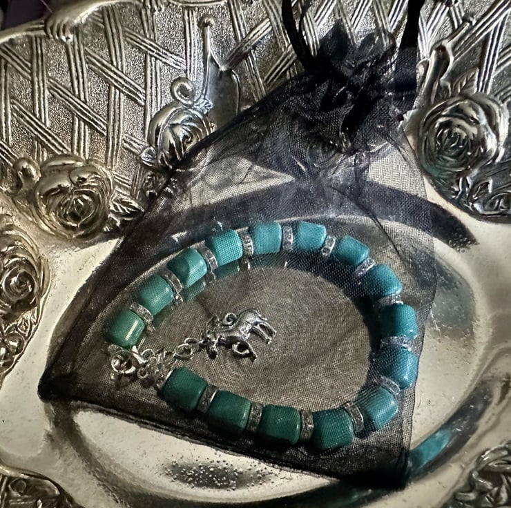 Vintage Handmade Bracelet with Turquoise Gemstones and Rhinestone Spacers, made with high-quality natural stones and materials.