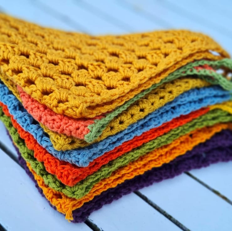 Bandana crocheted using mercerized cotton yarn saved from landfill.
