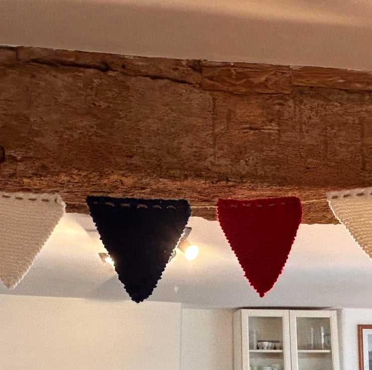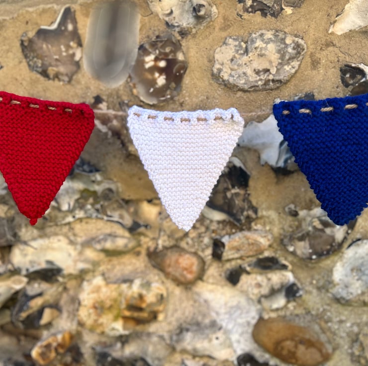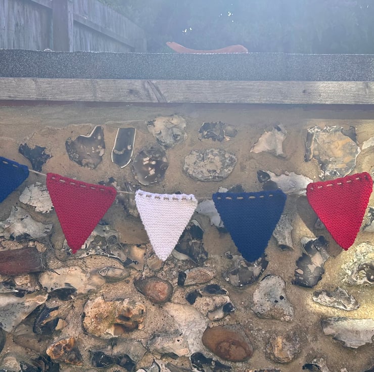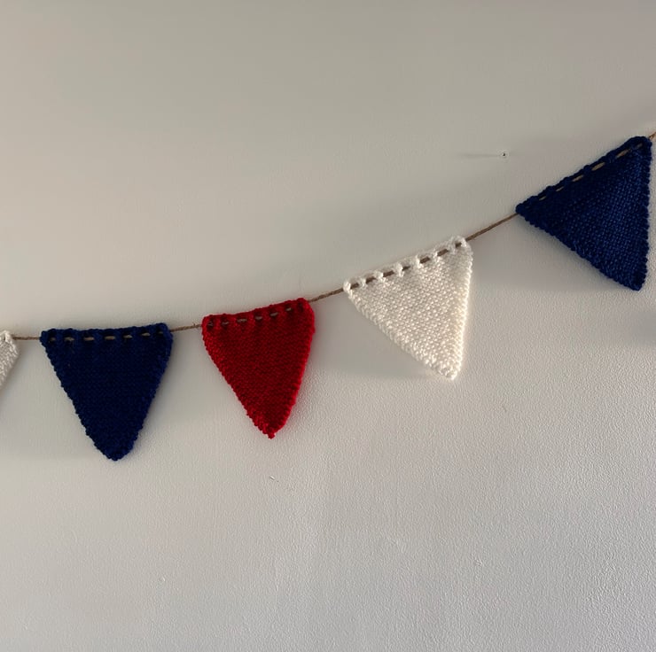 Add a splash of national pride to any occasion.. Each flag is lovingly knitted in classic Union Jack colours and strung on a long rustic style twine. Whether hosting a jubilee style bash, decorating for a bank holiday BBQ, or cheering on team GB, this Bunting is perfect to brighten up your celebration!