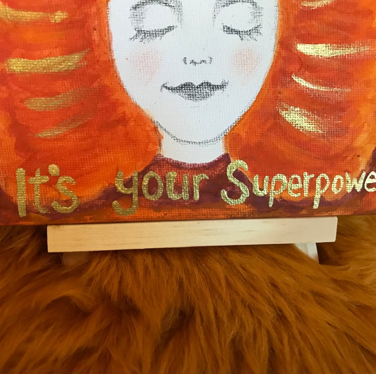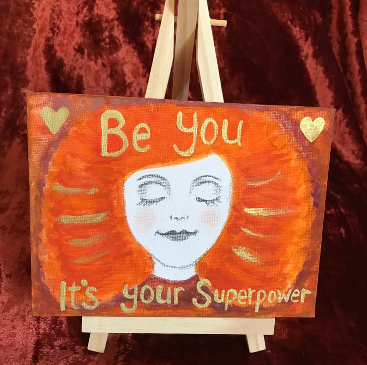 Original painting with easel, 16cm by 12cm, "Be you, it's your Superpower" xxx