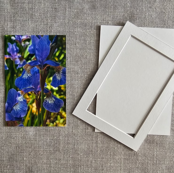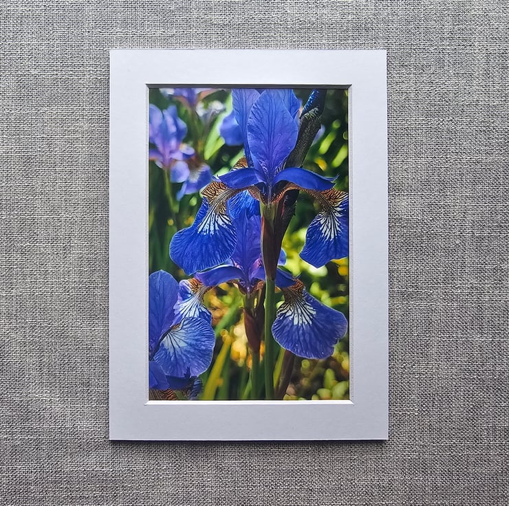 Blue Irises 6" x 4" (15cm x 10cm) Photo Print with White Mount