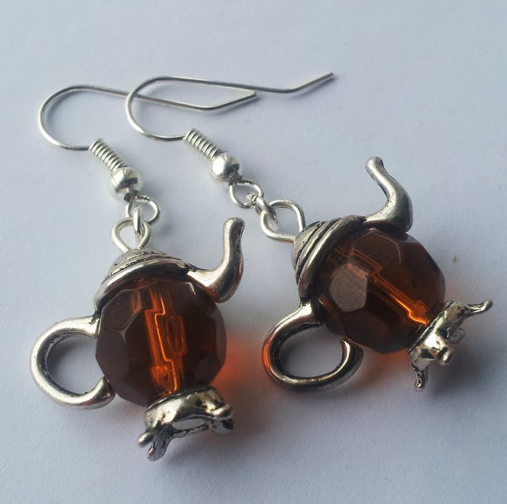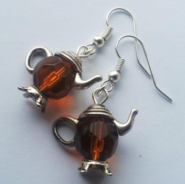 Brown Glass Teapot Earrings Drop Dangle Earrings