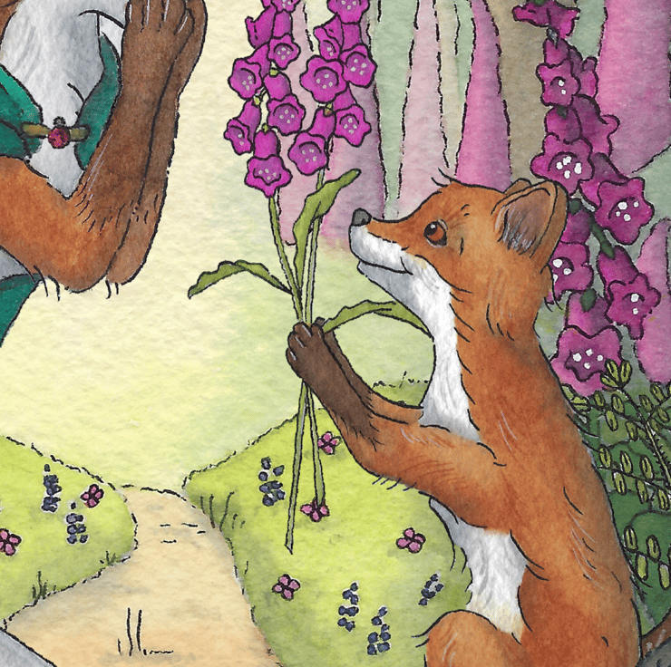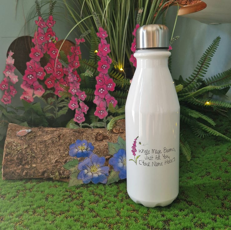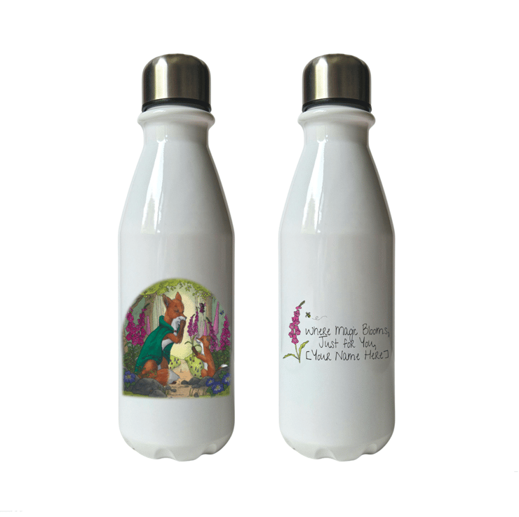 This 650ml white aluminium bottle features my ink & watercolour illustration of Finn Willowbrush, the fox cub who mistook foxgloves for tiny gloves—and found himself wrapped in a quiet tale of folklore and wonder.