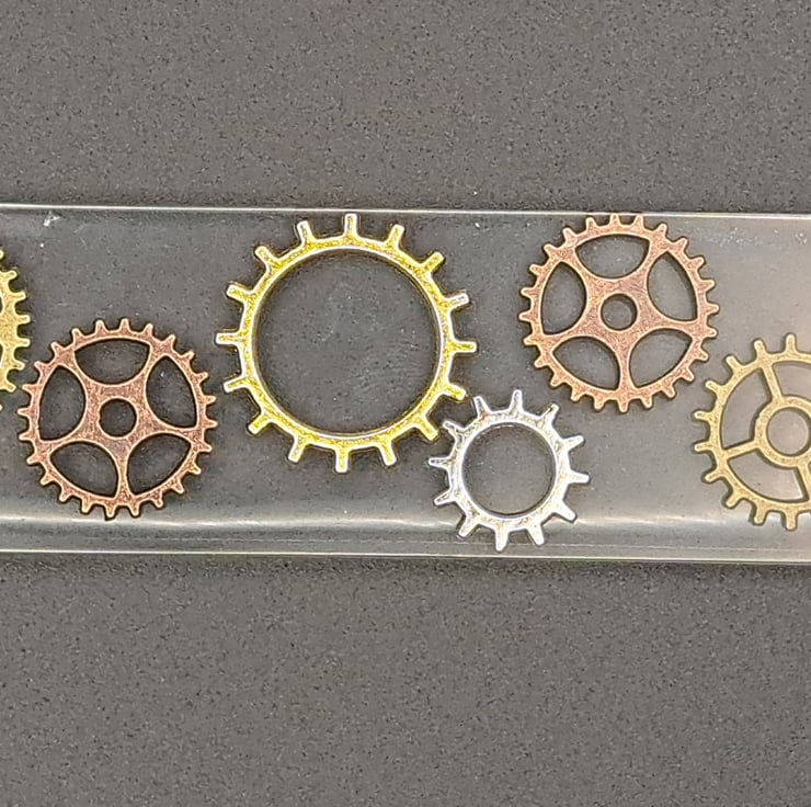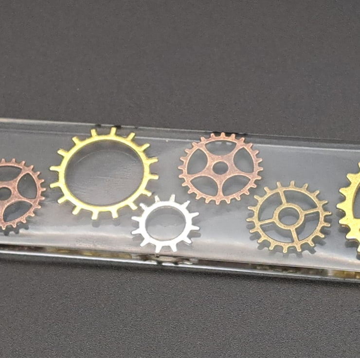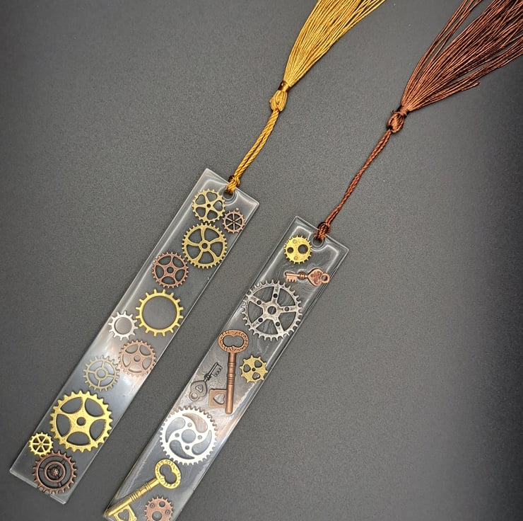 Cog streampunk bookmark with brown tassel made with epoxy Resin.