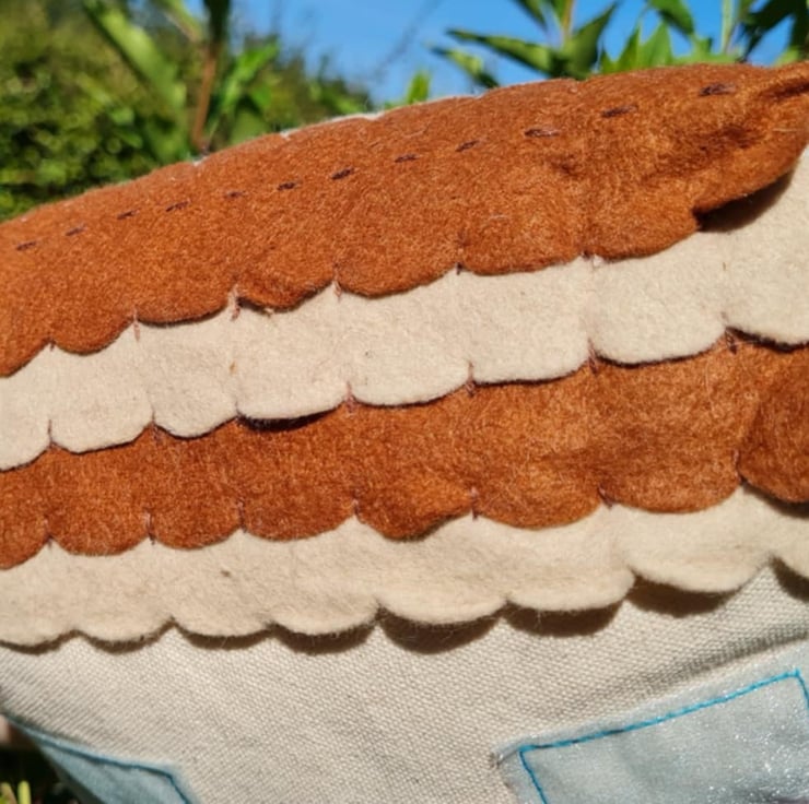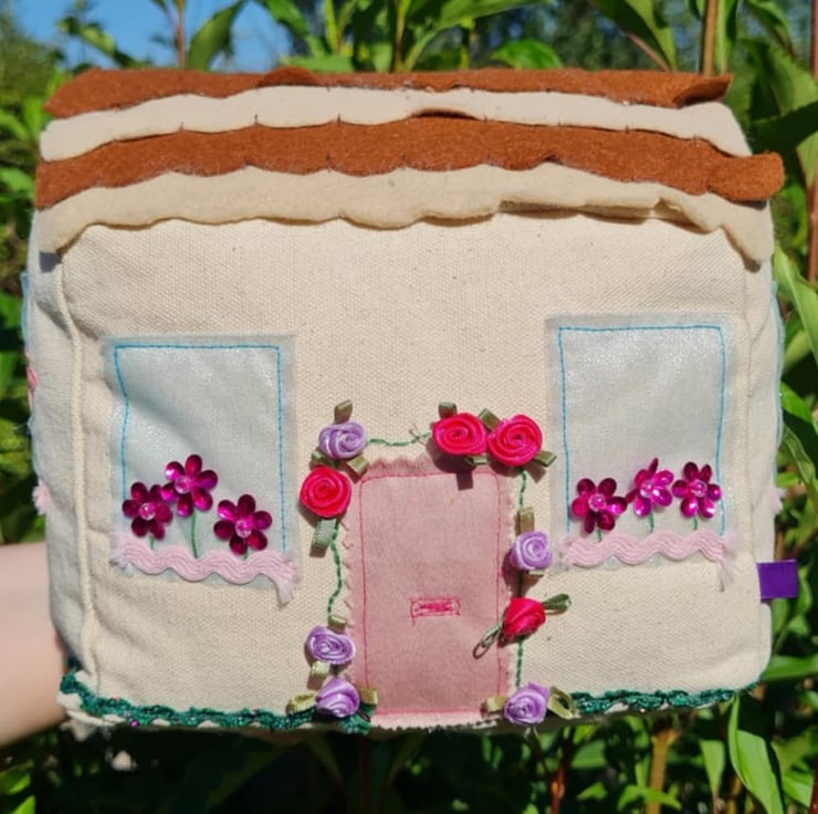 This gorgeous little cottage cushion is unfortunately being sold at a discount as it has suffered some damage while in storage!