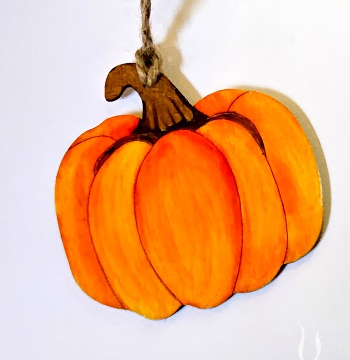 This hand-painted wooden pumpkin shaped hanging decoration is lovely just as it is, or there is room for a small personalisation (name or date perhaps).