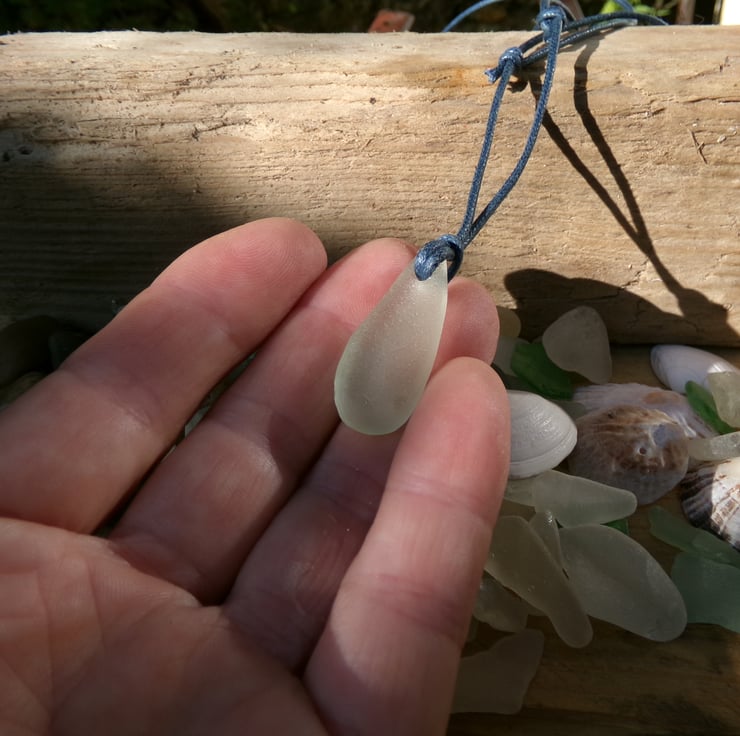 Beachcombed sea glass from the wild windswept beaches of Cornwall. A lovely teardrop shaped white sea glass found on the beaches near Lands End.
