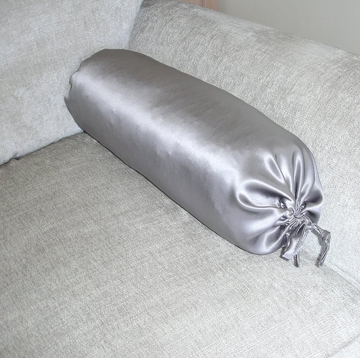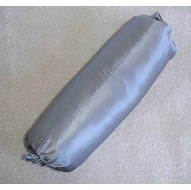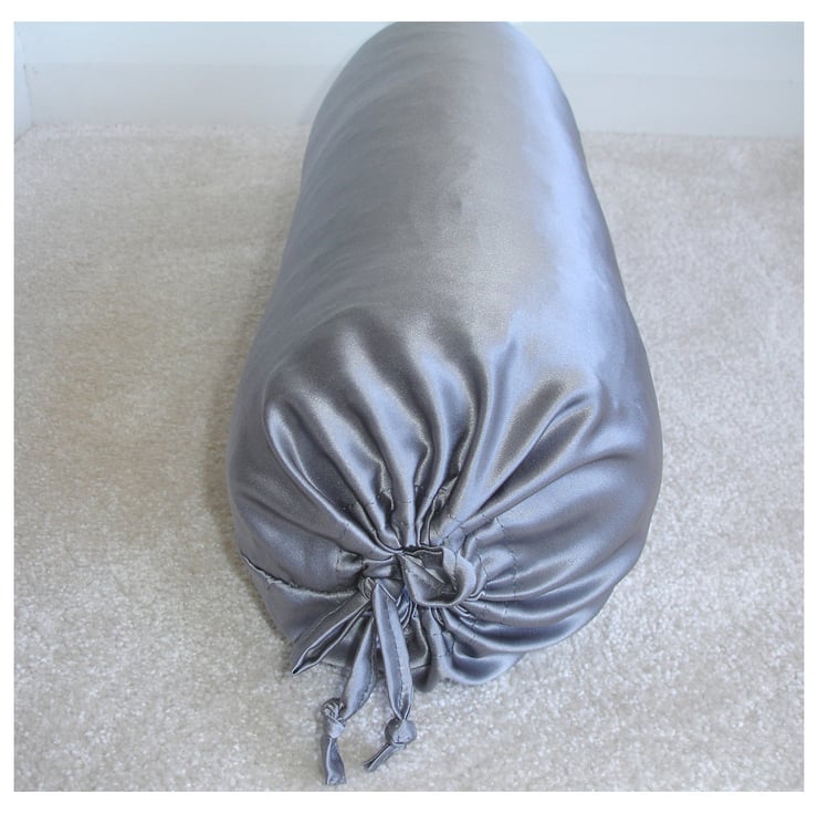Grey Satin Bolster Cushion Cover 16" x 6" With Ties Cylinder Neck Pillow Case