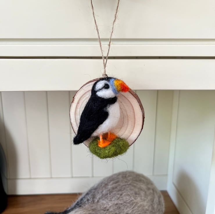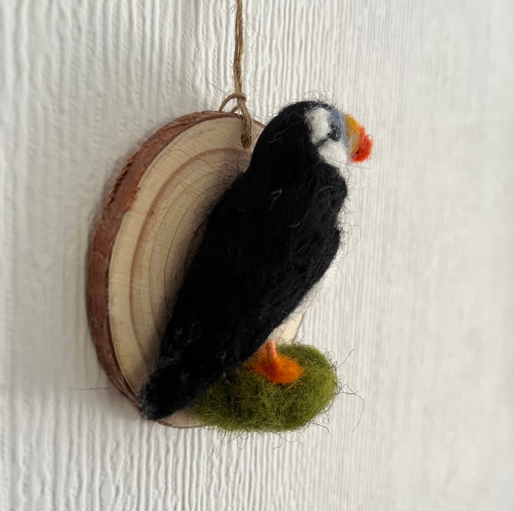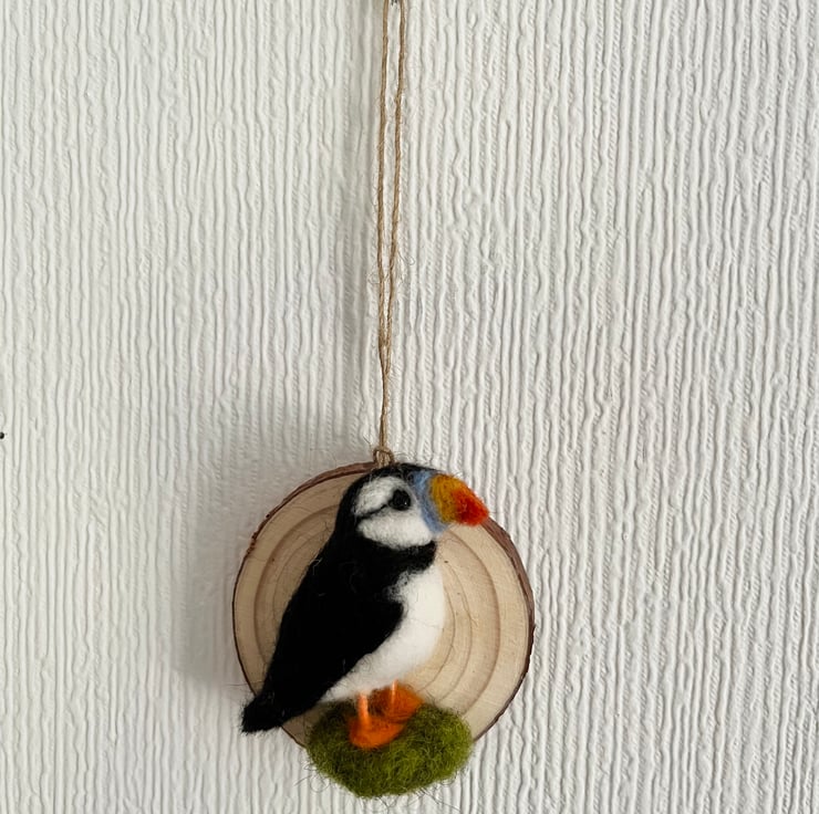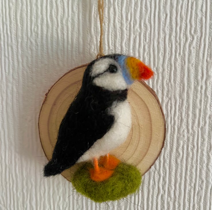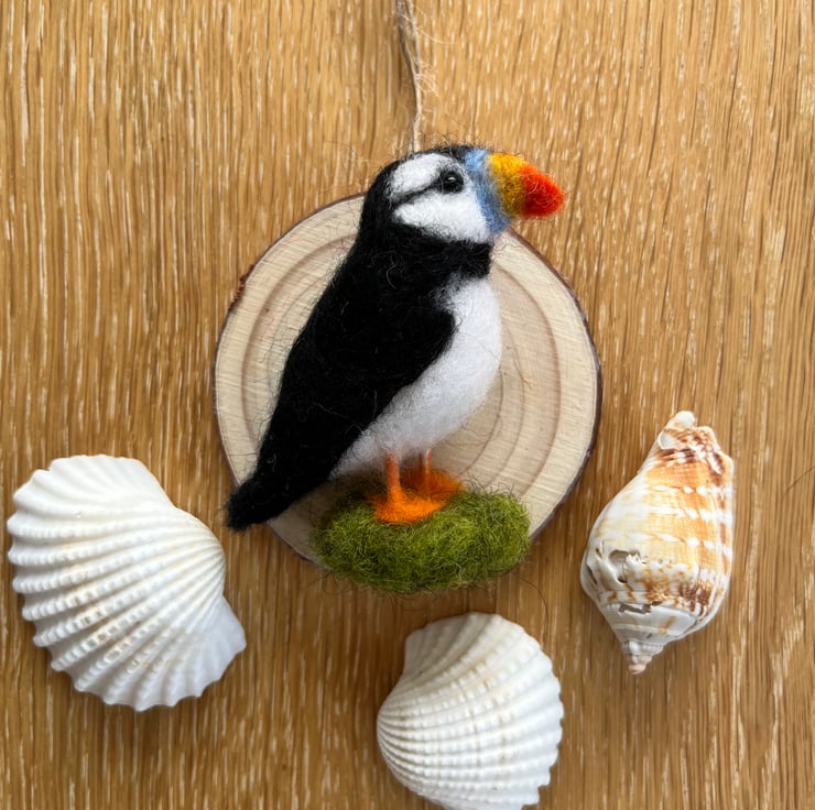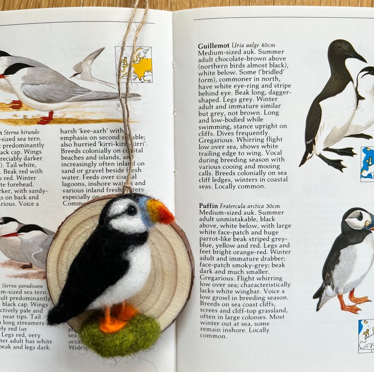 This had started out as a brooch , but developed into a tiny puffin. Decided to make him as a decoration to hang up as a reminder of sunny days.