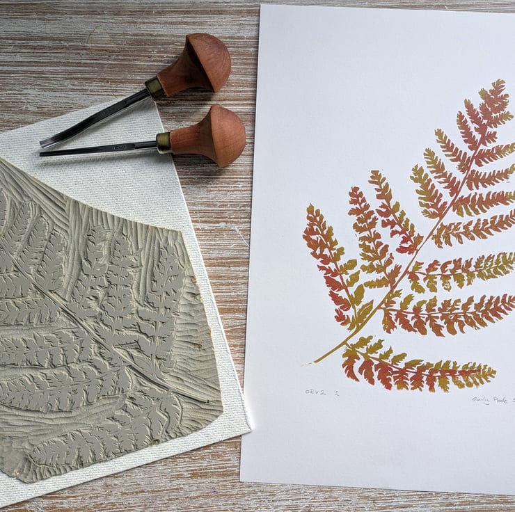 Every print is unique. The inking is done by hand and transferred to the paper using a small lever press, so every print has fascinating variations and is truly one of a kind. I use 190gsm A4 paper with Caligo Safe Wash Inks, so it's easy to frame and the colours will not fade over time. It would make a great housewarming gift for a plant-lover or look amazing in a nature-filled living room.