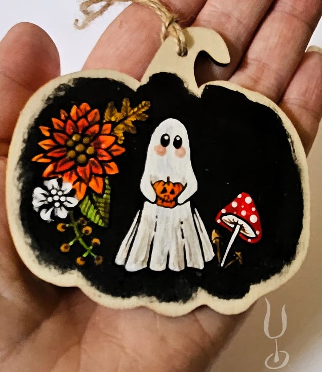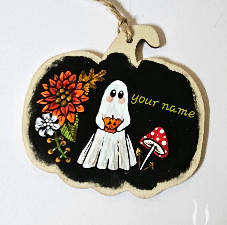 A cute, pumpkin carrying, Autumnal ghost friend for you to hang somewhere that makes you smile.