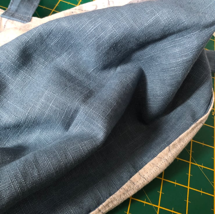 French seams, top stitching and a continuous fabric base help make this cotton and linen-denim fabric bag nice and strong.