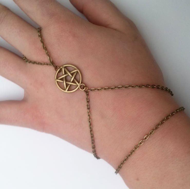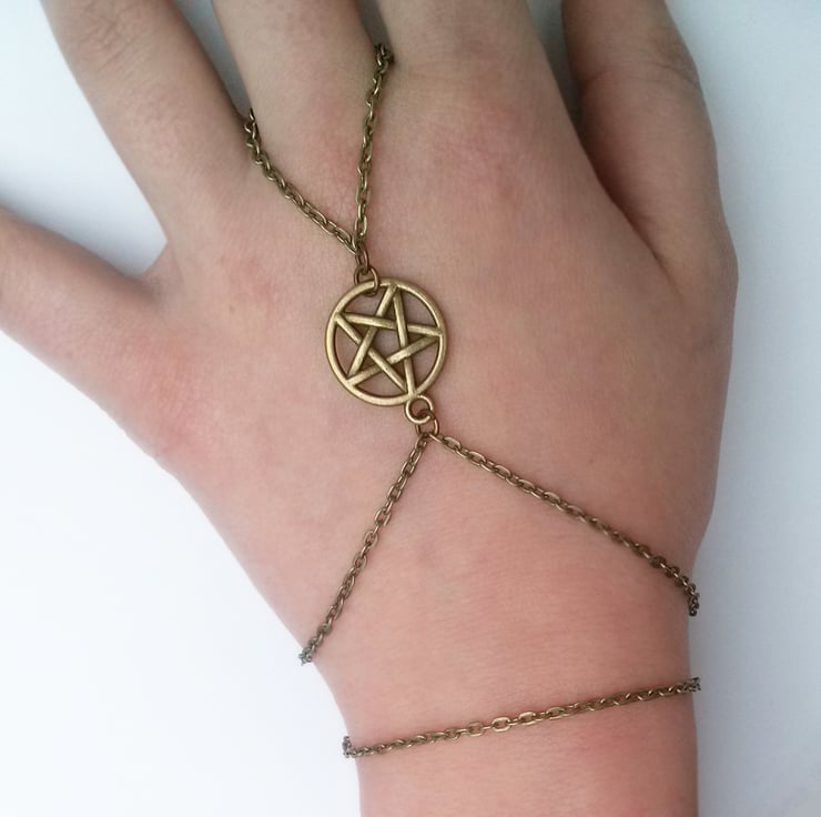 Bronze Pentacle Hand Chain Bracelet