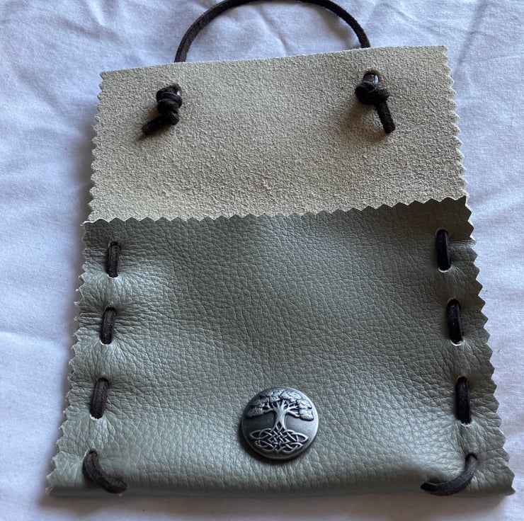 Small Pouch - Grey Coloured Leather Medieval Style - Tree of Life Style Closure