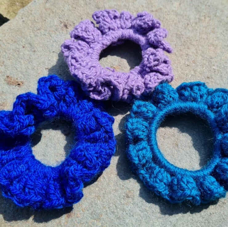 All of these scrunchies are made with yarns saved from landfill!