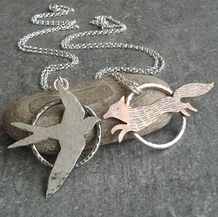 The silver bird necklace would make a lovely gift for any nature fan or lover of wildlife. Available separately in my shop is a similar necklace, with a copper fox, as shown in the last photo.