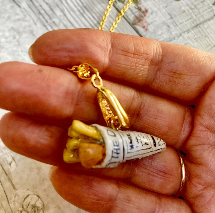 Fish And Chips in Newspaper Cone Quirky & Fun Handmade Pendant Necklace