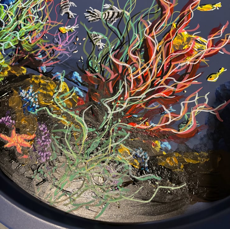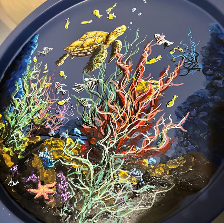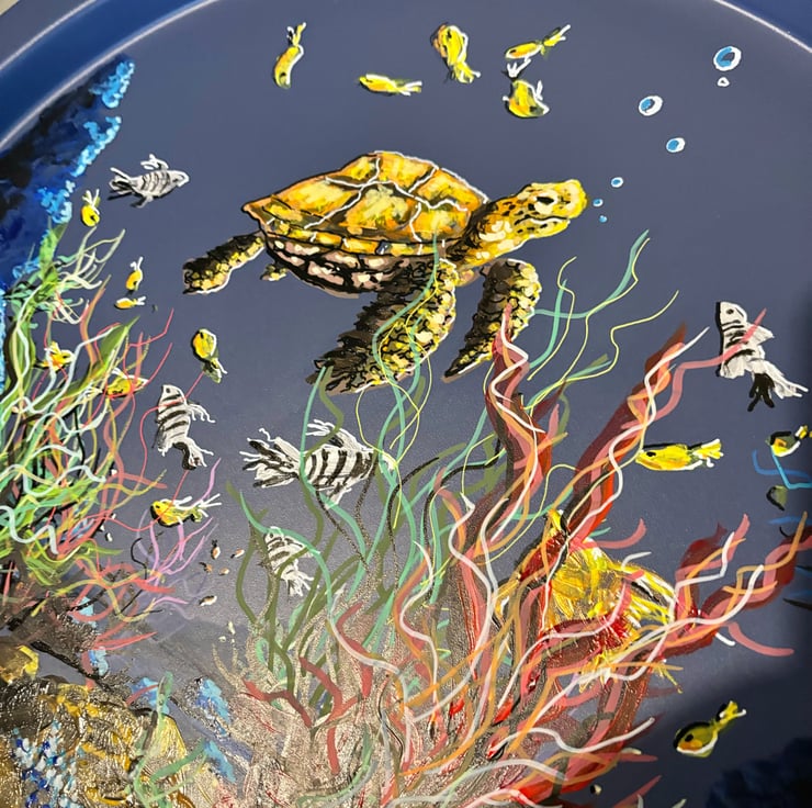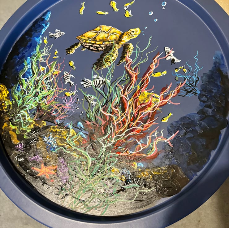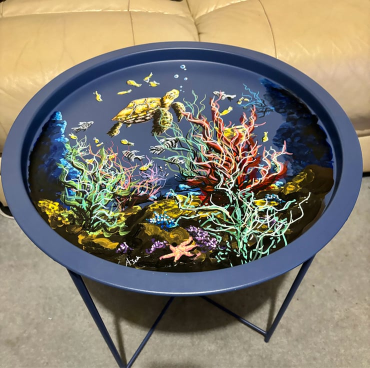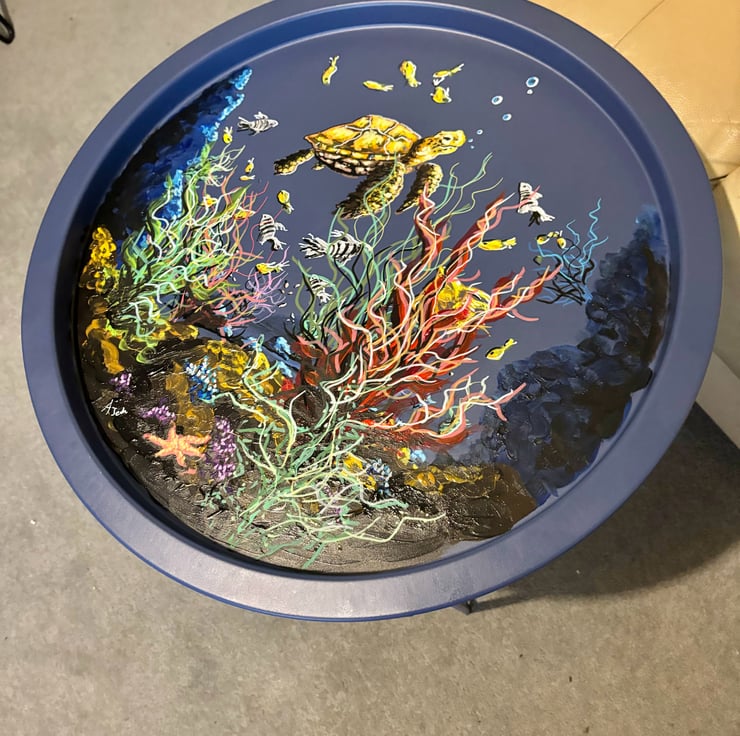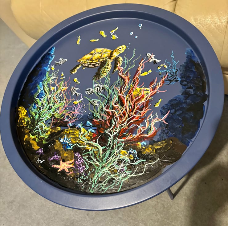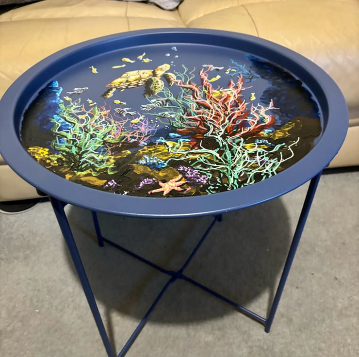 A hand painted and sealed metal folding table by Andrew Jenkins