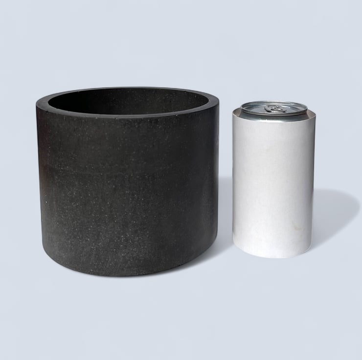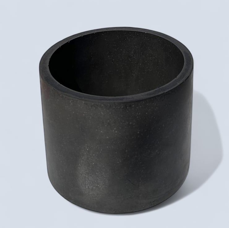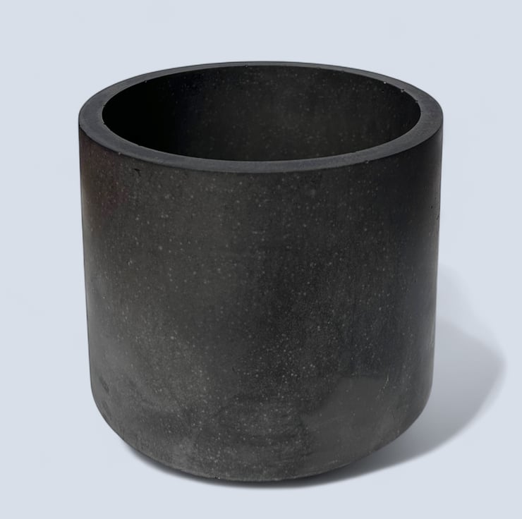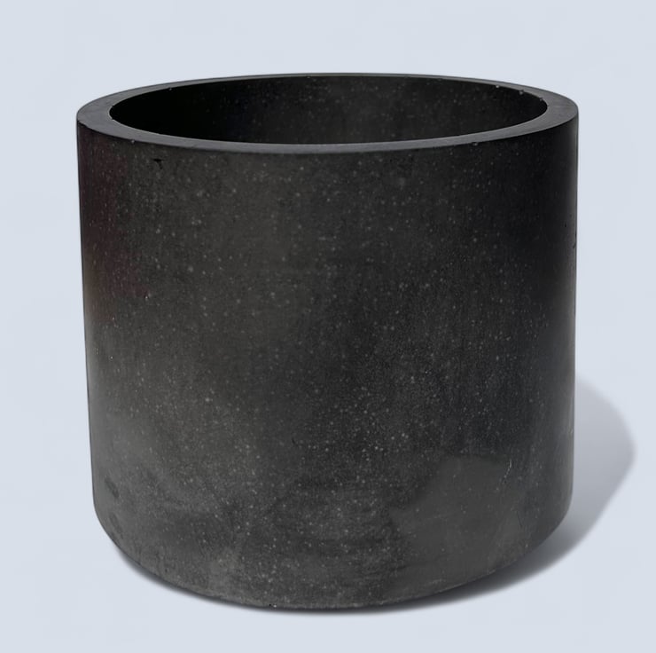 This minimalist dark grey plant pot is handmade from Cassini, a material commonly used in marble and stone restoration and repair. It features a smooth, luxurious texture similar to marble and is water and weather-resistant. The rich graphite colour is achieved by adding pigment to the water before mixing it with the plaster, ensuring the pot is dark grey throughout, not just on the surface. Its neutral tone complements various interior design aesthetics, making it an ideal gift or a lovely, practical treat for yourself.