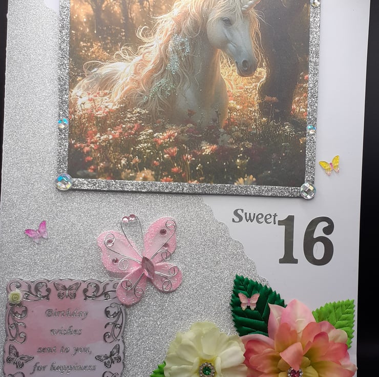 I love making fantasy cards as I can let my imagination run riot. Who doesnt love unicorns & this beauty is stunning. I had so much fun making it & a sweet 16 card was born.