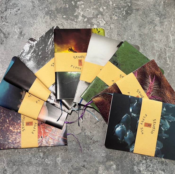 I’m not thinking I can save the world but I do think we should avoid waste when we can and these pictures seemed too wonderful to not to be put to a better use. I added pages of 100% recycled paper (approx 80gsm), stapled it all together with a page marker made from left over ribbon and trimmed it all up to make a series of marine themed notebooks.