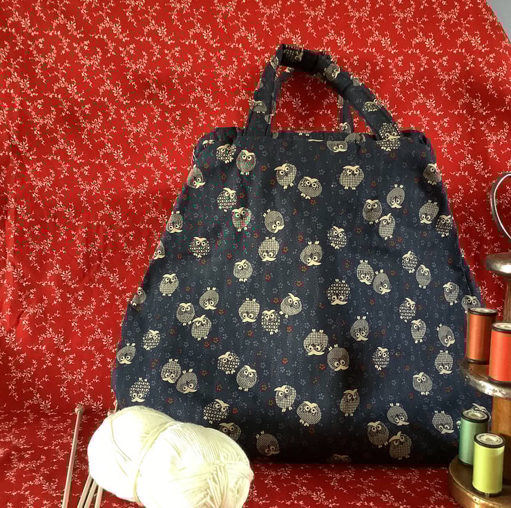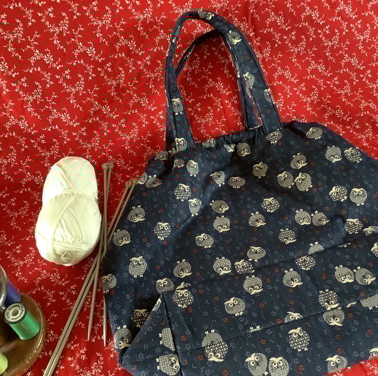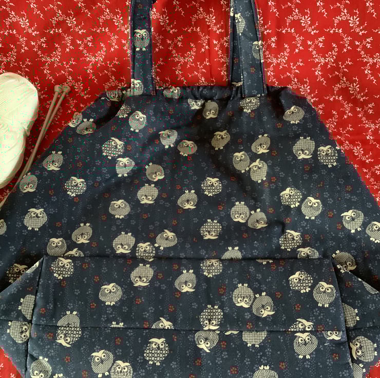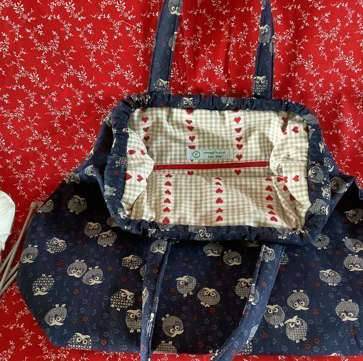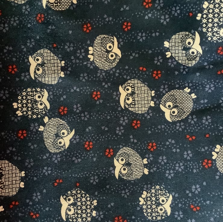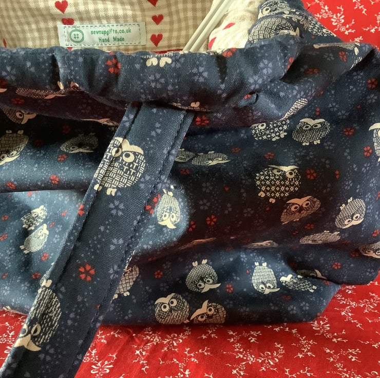 4. I have used a strong quilters cotton with a sweet topsy-turvy wise owl design and inside there are strings of hearts.