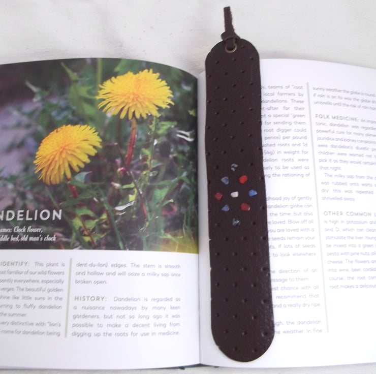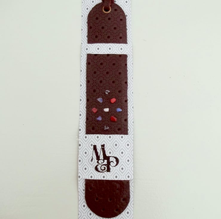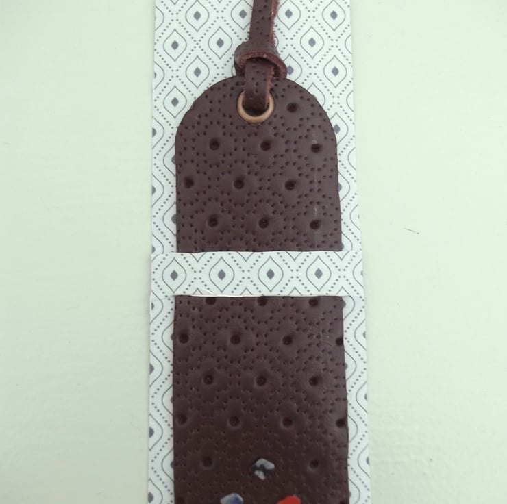 Dark brown leather bookmark.