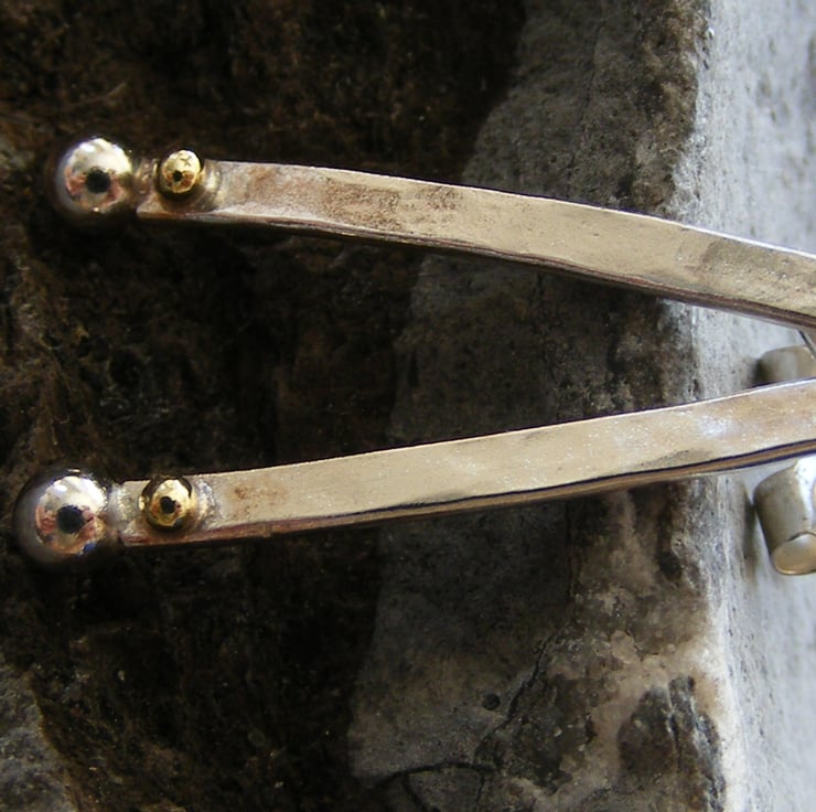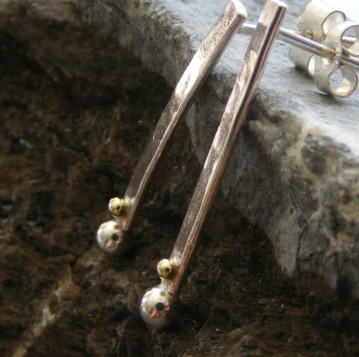 The tiny 18ct yellow gold accents have been created by melting 18ct gold wire into balls and soldering in place to create contrast above the highly polished spheres below them.