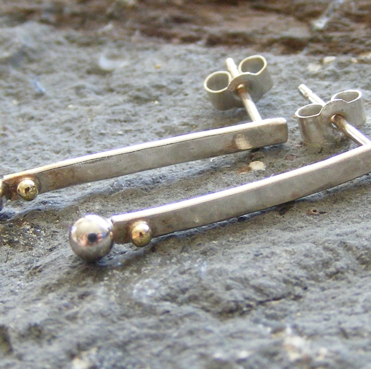 Modern, minimalistic sterling silver curved bar stud earrings created in my home studio in Hampshire.