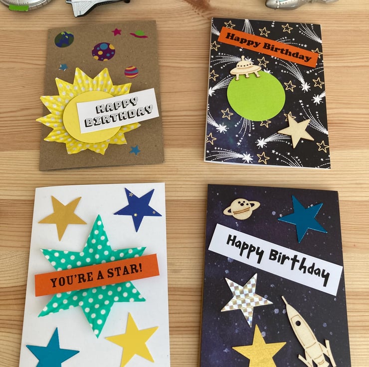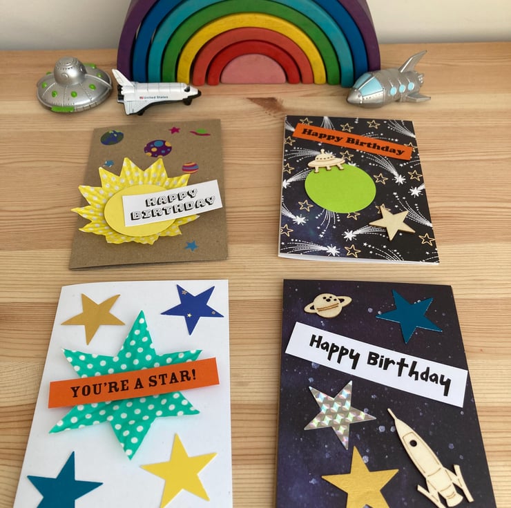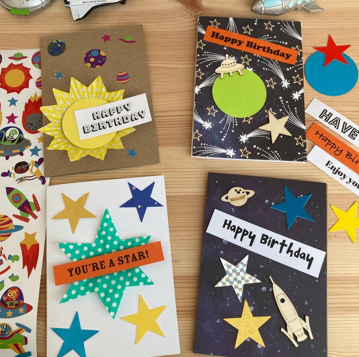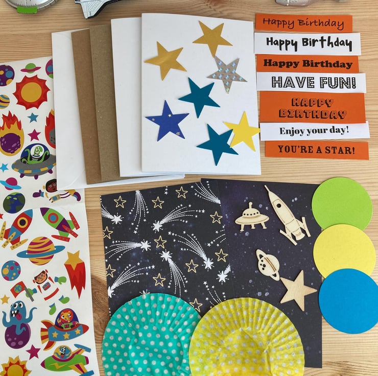 With this plastic-free craft set you & your children can get creative and have fun making 4 x unique birthday cards for friends or family.