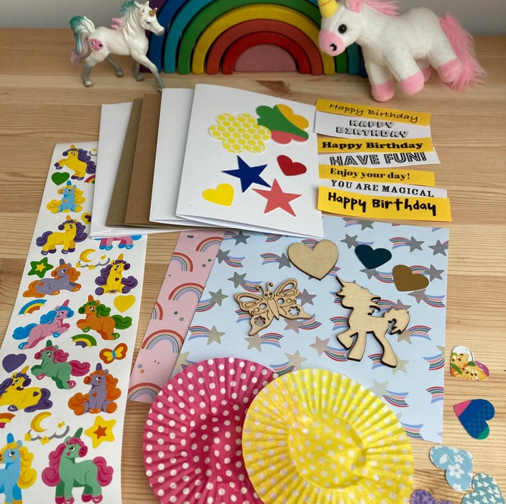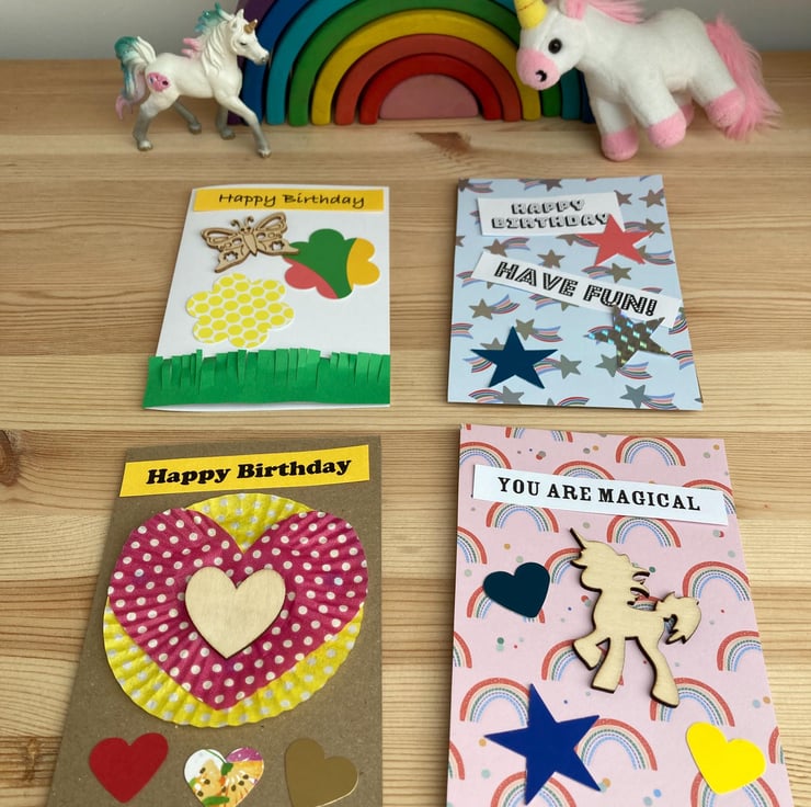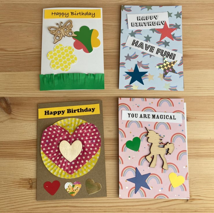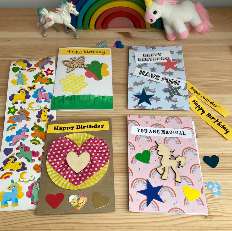 With this plastic-free craft set you & your children can get creative and have fun making 4 x unique birthday cards for friends or family.
